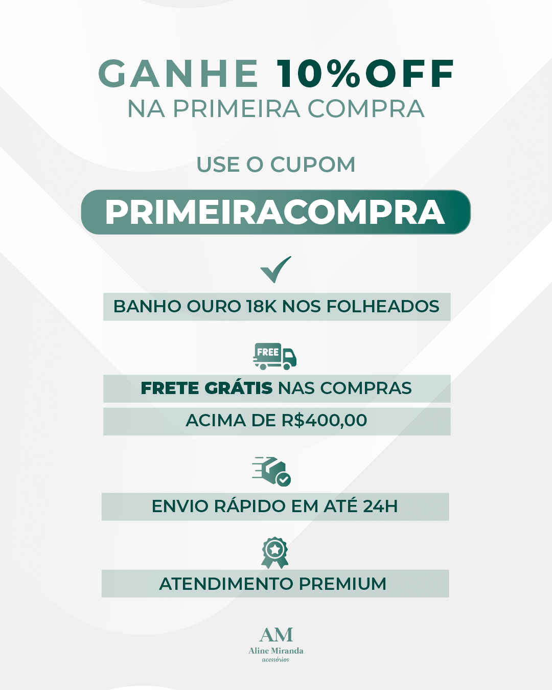 Banhos: Todos os nossos folheados recebem banho de verniz italiano + 3 mm de banho de ouro 18K e as nossas Bijuterias recebem níquel free e banho flash e são 100% antialergênicos. Produtos hipoalergênicos são aqueles que possuem menores chances de causar alergia.