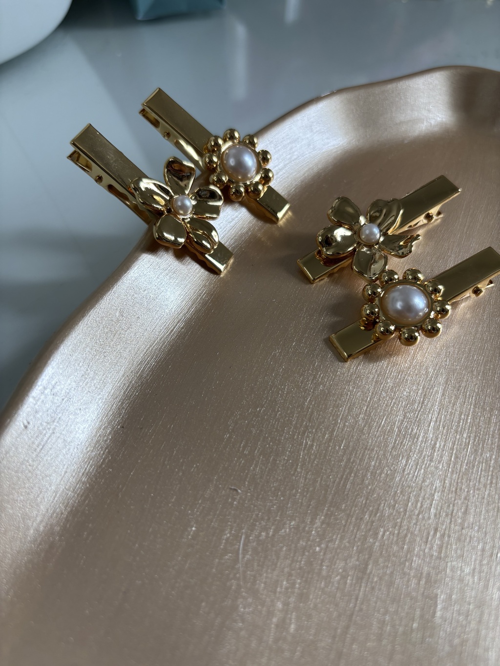 Presilha Para Cabelo Dourada Folheada a Ouro 18k Premium Com Pérola